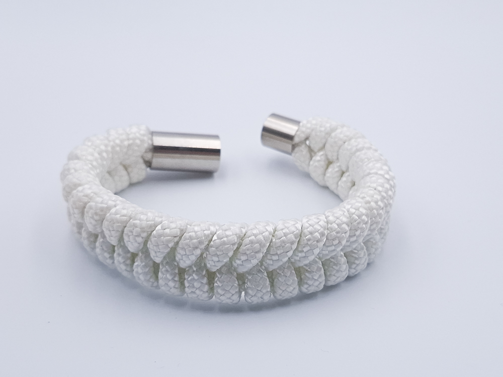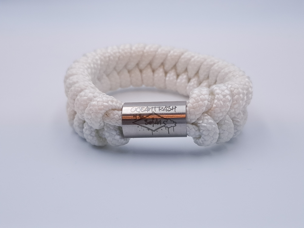 As a fish, the beluga is pretty impressive, so we had to make a matching impressive bracelet. The white beluga. Braided with smooth white rope, cleaned and kept the best pieces for this bracelet.